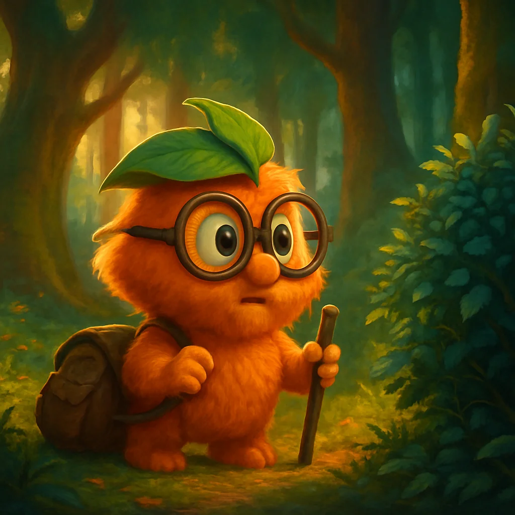 O Explorador Angus, um aventureiro fofo e laranja, ajeitou seus óculos redondos sobre os olhos curiosos. Sua mochila, que servia como um travesseiro fofo em noites de acampamento, estava levemente arrumada, pois Angus adorava viajar sem excessos. O amuleto de sorte de sua família, uma folha encantada costurada em seu chapéu, balançou suavemente enquanto ele se preparava para entrar na Floresta Assombrada. "Que dia lindo para uma exploração!", ele murmurou para si mesmo, o som de sua voz ecoando suavemente entre as árvores altas. Angus amava a natureza, o cheiro de terra úmida e o farfalhar das folhas sob seus pés. Ele estava em uma missão especial para encontrar os lendários Cristais Cantantes, que diziam entoar melodias mágicas quando a lua cheia pintava o céu de prata. Ele sabia que a floresta podia ser um pouco assustadora, com suas sombras dançantes e sons misteriosos, mas a curiosidade de Angus era sempre maior que seu medo. Ele carregava um cajado robusto para se apoiar em terrenos difíceis e seu estômago roncava um pouco, lembrando-o de que ele havia empacotado seus lanches favoritos para a jornada. Enquanto caminhava por uma trilha coberta de musgo, ele ouviu um barulho incomum vindo de um arbusto denso. Um farfalhar, um murmúrio, algo que não era o vento ou o chilrear de um pássaro. Seus olhos se arregalaram um pouco atrás das lentes, e ele parou, o cajado pronto. "Olá?", ele chamou suavemente, não querendo assustar o que quer que estivesse lá. "Tem alguém aí? Sou Angus, o aventureiro!"