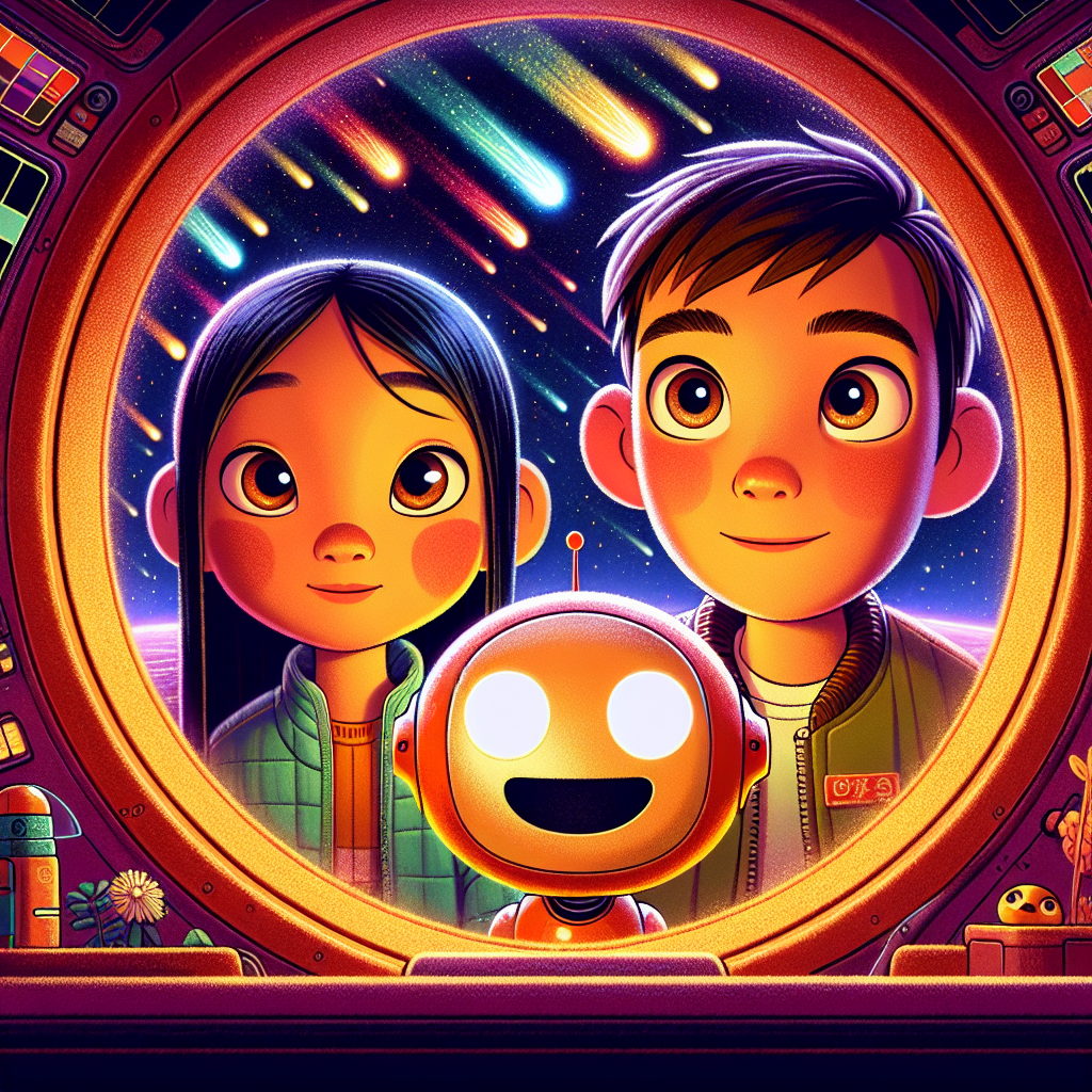 Инг и Джексон, два юных исследователя космоса, весело бороздили просторы космоса на своей сверкающей ракете. Сегодня они направлялись к Космической Станции, чтобы проверить новый телескоп.
