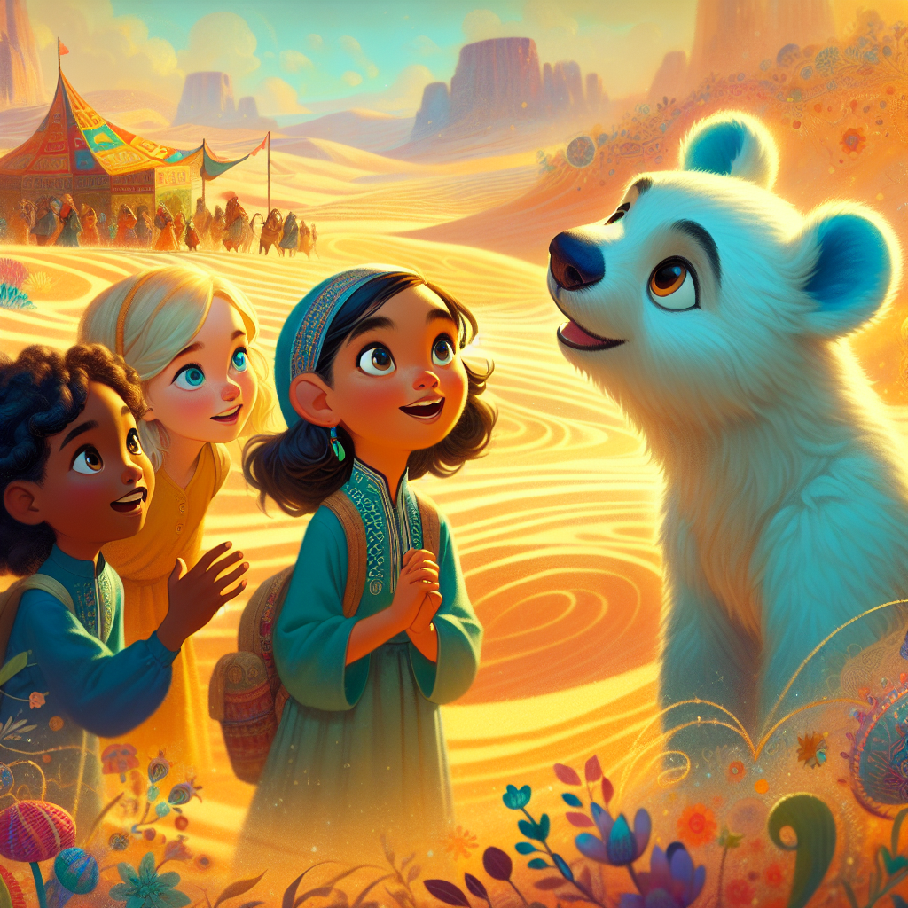 กาลครั้งหนึ่งนานมาแล้ว ในโอเอซิสกลางทะเลทรายที่กว้างใหญ่ มีหมีขั้วโลกขนปุยสีฟ้าเข้มชื่อ โพล่า โพล่าเป็นหมีที่ชอบการผจญภัยในน้ำแข็ง ถึงแม้ว่าเธอจะอยู่ในทะเลทรายก็ตาม เธอมีหูสีน้ำเงินสดใส และขนของเธอสามารถเปลี่ยนสีได้ตามแสงเหนือ! "สวัสดี!" โพล่าทักทายเด็กหญิงสามคนด้วยเสียงใสแจ๋วที่ดังมาจากในพุ่มไม้