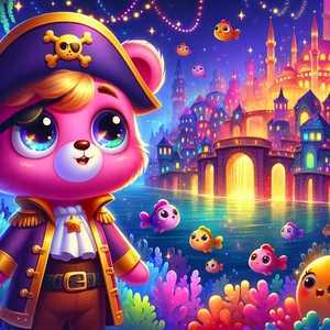 Bir zamanlar, derin maviliklerin altında, sihirli bir şehir vardı. Bu şehir, balıkların şarkılar söylediği, mercanların dans ettiği ve denizkızlarının güldüğü bir yerdi. Ama en önemlisi, her tarafın parıl parıl parladığı bir yerdi. Bu parıltılar, şehri aydınlatır, neşe getirir ve her şeyi daha güzel yapardı. Şehrin en önemli koruyucusu ise Prens Korsan Ayı'ydı. Prens Korsan Ayı, pembe renkli, altın bir taç takan ve korsan göz bandı olan cesur bir ayıydı. Onun koleksiyonunda 37 farklı taç vardı ve hepsini çok severdi. Ayrıca, orman hayvanlarıyla konuşabiliyor, balı sevdiği kadar da arkadaşlarına yardım etmeyi seviyordu.