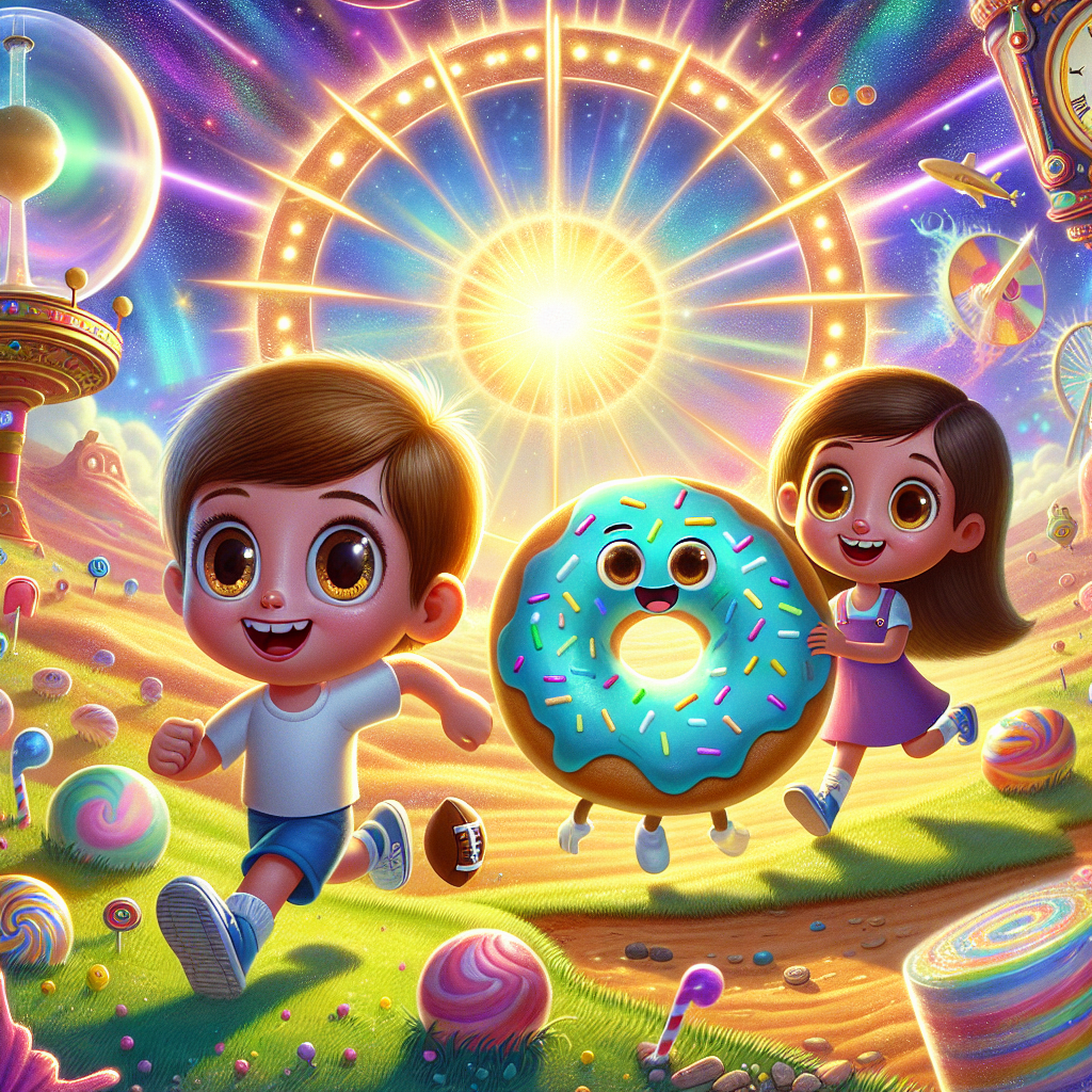 David ve Julia, iki harika arkadaştı. David, top sürmeyi ve gol atmayı severdi. Sahada bir yıldızdı, ama maçları kazanmak her zaman kolay değildi. Julia ise dans etmeyi ve şarkı söylemeyi severdi. Müzik çaldığında, ayakları kendi kendine hareket ederdi. Bir gün, oyun parkına gittiler ve inanılmaz bir şey keşfettiler: devasa, nefis görünen bir donut şeklinde bir zaman makinesi! Makine, parlak mavi renkteydi ve üzerine rengarenk şekerlemeler serpilmişti.
