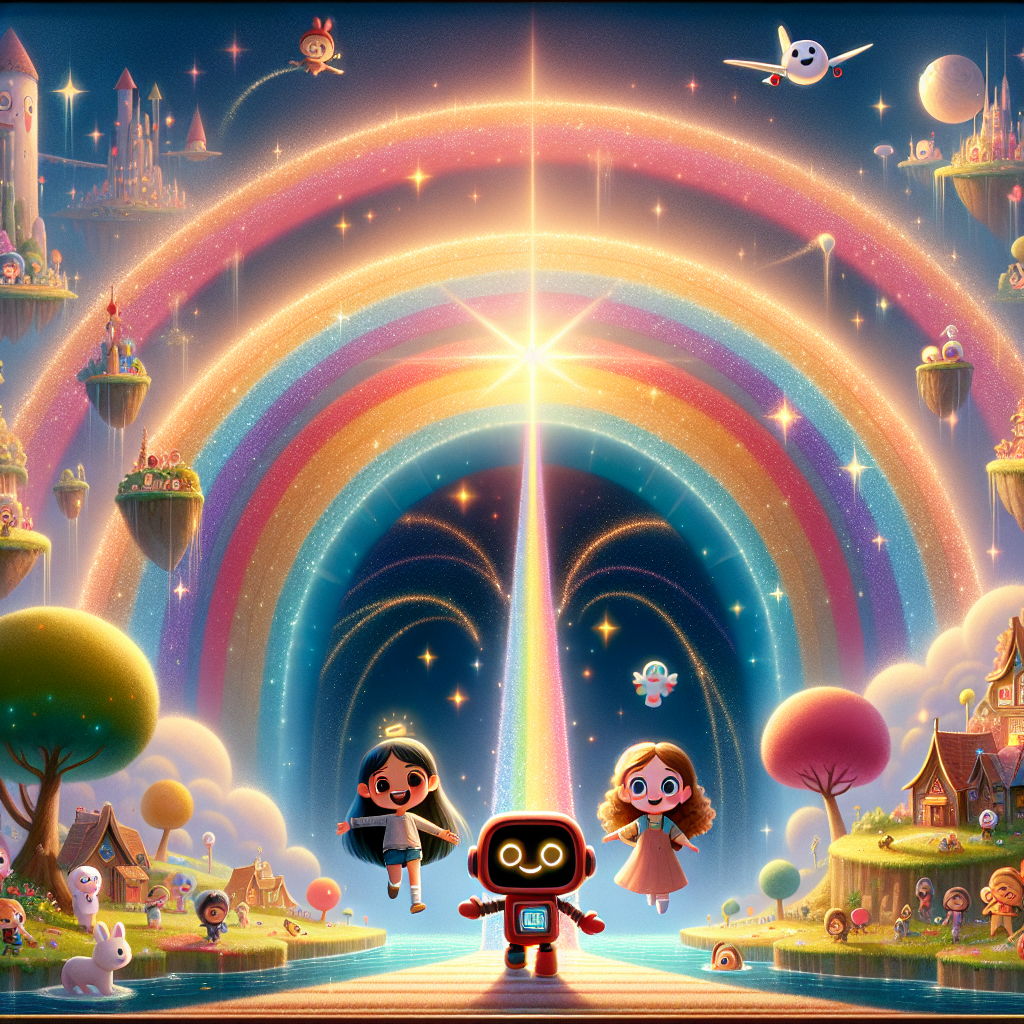 Gökyüzünde yüzen, renkli gökkuşağı köprüleriyle birbirine bağlanan Adaların üzerinde bir zamanlar, sihirli bir diyar vardı. Burası, hayallerin ve kahkahaların havada uçuştuğu, herkesin kalbinin mutlulukla dolduğu bir yerdi. Burada, kırmızı mı kırmızı, sevimli mi sevimli, kucaklaşmaları çok seven minik bir robot olan Ay Botu Boop yaşıyordu. Boop'un minik antenleri, uyuyan çocukların en tatlı hayallerini toplar, onları dağınık uzay tozundan dilek tozu yapardı. Bir gün Boop, heyecanla zıpladı. "Bip bip!" diye seslendi, "Gök Ada'ya mutluluk getirme zamanı!"