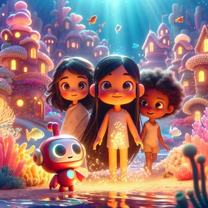 Gökkuşağı Mercan Kayalıkları'na hoş geldiniz! Burası, baloncuk evleri, parıldayan mercanları ve neşeli balıklarıyla dolu, suyun altında parıldayan bir şehirdi. Jahaan, Sitara ve hsjs, Gökkuşağı Mercan Kayalıkları'ndaki özel bir festivale katılmak için gelmişlerdi. Jahaan, kocaman dinozorlar ve inşaat ekipmanları hakkında konuşmayı severdi. Sitara, parıldayan prensesler ve sevimli köpek yavruları ile ilgili her şeyi severdi. hsjs, uzay ve prensesler hakkında her şeyi severdi.