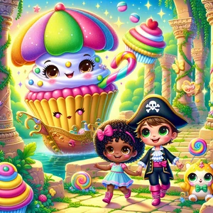 Uzun zaman önce, şimdi antik kalıntılar olarak bilinen, parıldayan kumlarla dolu bir diyarda, Captain Pompom adlı parlak botları ve keklerden yapılmış bir gemisi olan cesur bir amigo korsanı yaşıyordu. Captain Pompom'un gemisi gökkuşağı renklerinde parıldayan, tatlı kokulu bir gemiydi. Geminin direği, kocaman bir lolipoptan yapılmıştı ve yelkenleri şekerlemelerden oluşuyordu. Captain Pompom her zaman neşeyle doluydu ve özel tezahüratıyla her şeyi parıldatabilirdi! O gün, güzel prensesin tacının kaybolduğu haberi gelmişti. "Ne olacak, bu çok üzücü!" diye bağırdı Captain Pompom. "Ama endişelenmeyin, onu bulacağız!" dedi, gözleri bir parıltı gibi parıldadı.