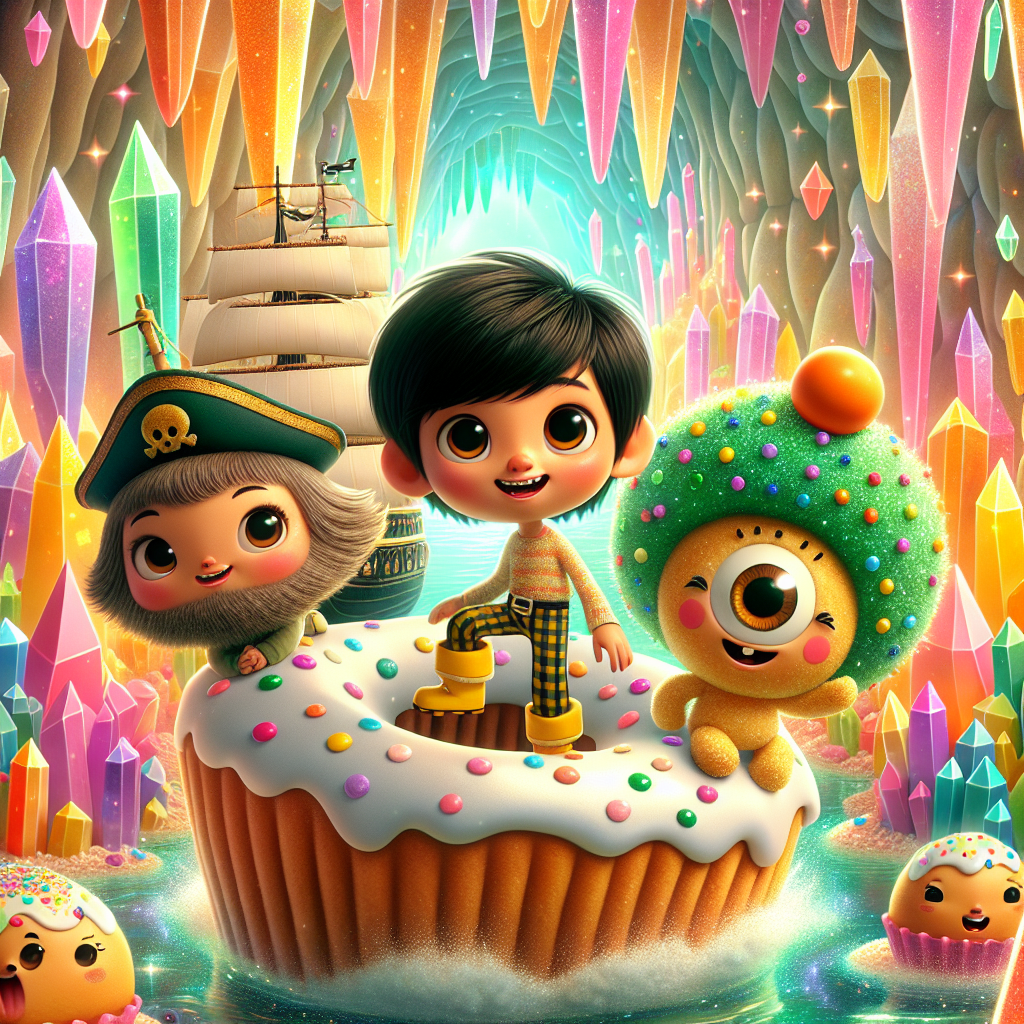 Günlerden bir gün, Kristal Mağaraları'nda, gökkuşağı renklerinde parıldayan, pembe kremalı, üzeri şekerlemelerle süslü bir gemiyle Kaptan Pompom yaşıyordu. Kaptan Pompom, her zaman neşeli, cesur ve en önemlisi de pırıl pırıl çizmeleri olan bir amigo korsandı! Gemisi, pembe kekten yapılmıştı ve asla batmazdı, çünkü üzerindeki krema suya dayanıklıydı. Kaptan Pompom'un en sevdiği şey, arkadaşlarına cesaret vermek ve özel bir tezahüratla her şeyi parlatmaktı.