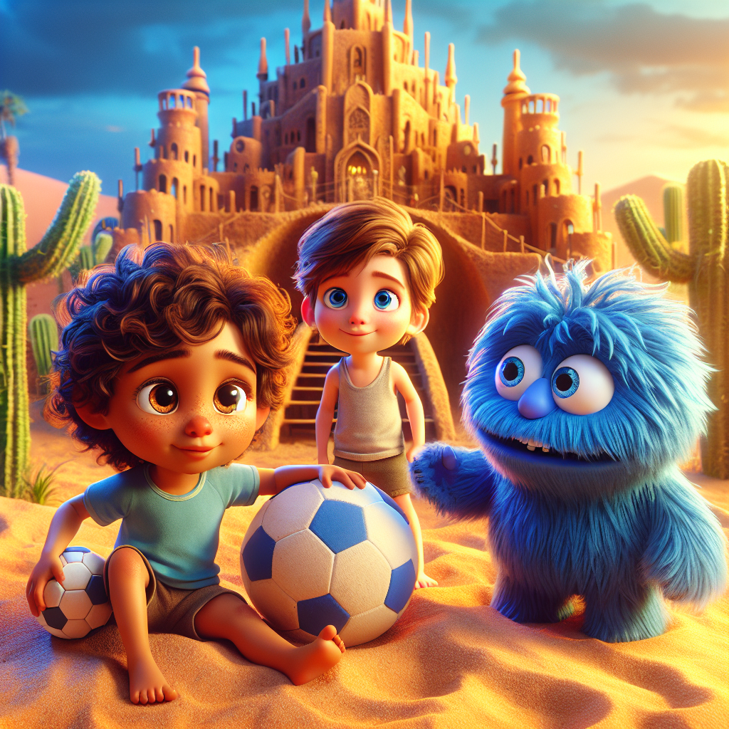 Çok uzaklarda, altın rengi kumların ve parıldayan güneşin altında, büyülü bir vaha bulunuyordu. Bu vahada, berrak sular neşeyle akar, palmiye ağaçları göğe yükselir ve her yer hayat doluydu. Küçük Lucas, futbol oynamayı ve dışarıda oynamayı çok seven, güneşin altında koşuşturmayı seven meraklı bir çocuktu. Ayrıca devasa kumdan kaleler inşa etmeyi severdi, tıpkı bir kralın sarayı gibi! Bir gün, Lucas, vahanın ortasında duran, altın rengi kumdan yapılmış büyük bir kaleye benzeyen bir yapı inşa etti.