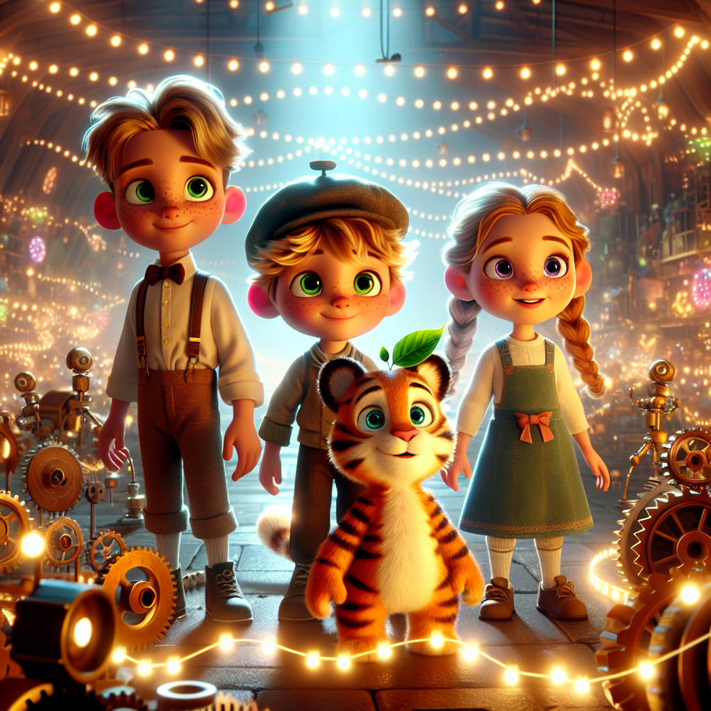Tiko, yaprak şapkalı bir orman kaşifi kaplan, zümrüt yeşili gözleri ve her zaman gülümseyen bir ağzıyla, devasa bir robot fabrikasında dolanıyordu. Elinde bir hazine haritası vardı. Bu harita, onu, mutluluğu getirdiği söylenen Kayıp Kahkahalı Taş'ı bulmaya götürecekti. Fabrika, her biri tuhaf bir amaç için tasarlanmış robotlarla doluydu. Arthur'un şövalye ve kalelerle ilgili sevdiği hikayeleri düşündüğü gibi, burası da bir tür mekanik şövalyeler ve kaleler dünyasıydı. Metal kokusu, yağ ve dönen dişlilerin sesi buradaydı. Tiko, orman kaşifi kimliğine rağmen, biraz tuhaf görünüyordu ama yine de kararlılıkla ilerliyordu.