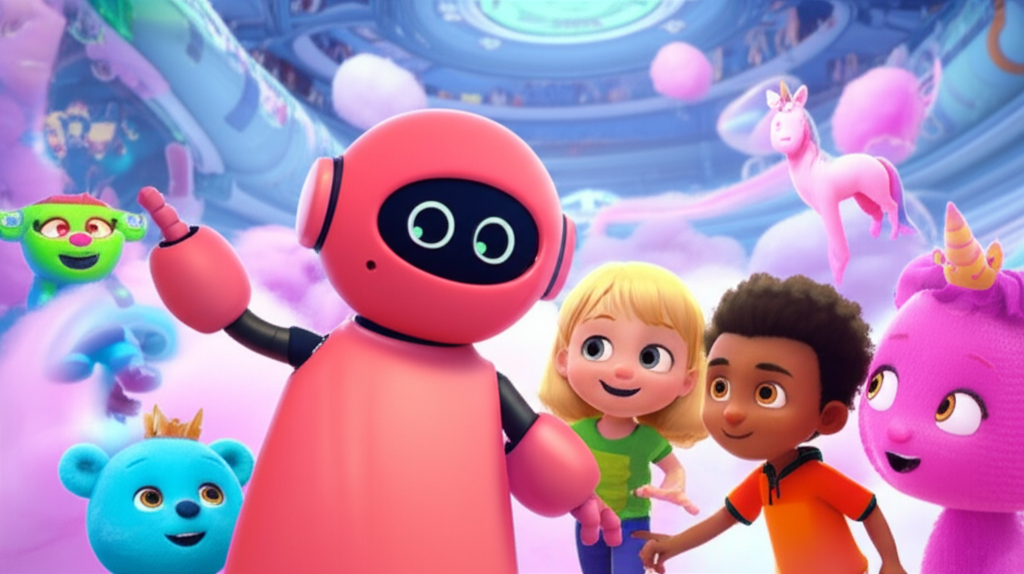Uzay istasyonunda onları ilk karşılayan, somon rengi, kahkahalarla dolu bir robot olan Zoggy oldu. "Hoş geldiniz arkadaşlar!" dedi Zoggy, "Bugün harika bir gün!" Zoggy'nin sesi neşeyle doluydu. "Gelin, hep birlikte eğlenceli bir oyun oynayalım!" Zoggy'nin gözleri, birer ışık topu gibi parladı. "Saklambaç oynamaya ne dersiniz?" Andres hemen atılıp "Evet! Evet!" diye bağırdı. "Koşmayı ve saklanmayı çok severim!" Amelia heyecanla "Unicornlar ve sihirli şeyler de olsun mu?" diye sordu. Victor ise, "Kazanan biz olalım!" dedi, gözleri parlayarak.
