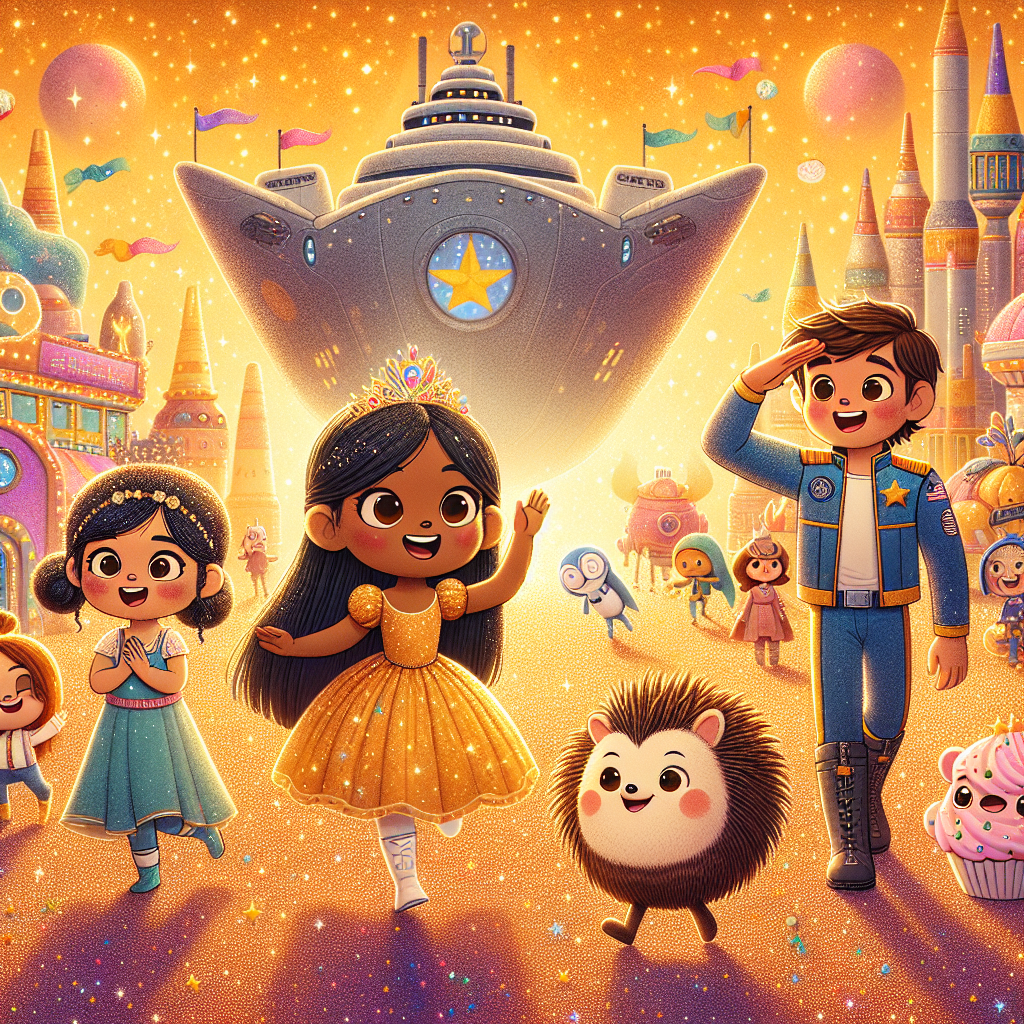 O gün, Jahaan, en sevdiği inşaat kamyonu kıyafetiyle geldi. Kamyonu uzay gemisine dönüşmüştü! "Vruuum, vruuum!" diye sesler çıkararak istasyona doğru ilerledi. Sitara ise, parlak bir prenses elbisesi giymişti ve ışıltılı bir taç takmıştı. "Prensesler ve yıldızlar! Harika bir gün olacak!" diye heyecanla zıpladı. hsjs de bir prenses tacı takmıştı ve uzay temalı bir kıyafet giymişti. Gözleri parlıyordu. "Uzay! Prensesler!" diye sevinçle çığlık attı.