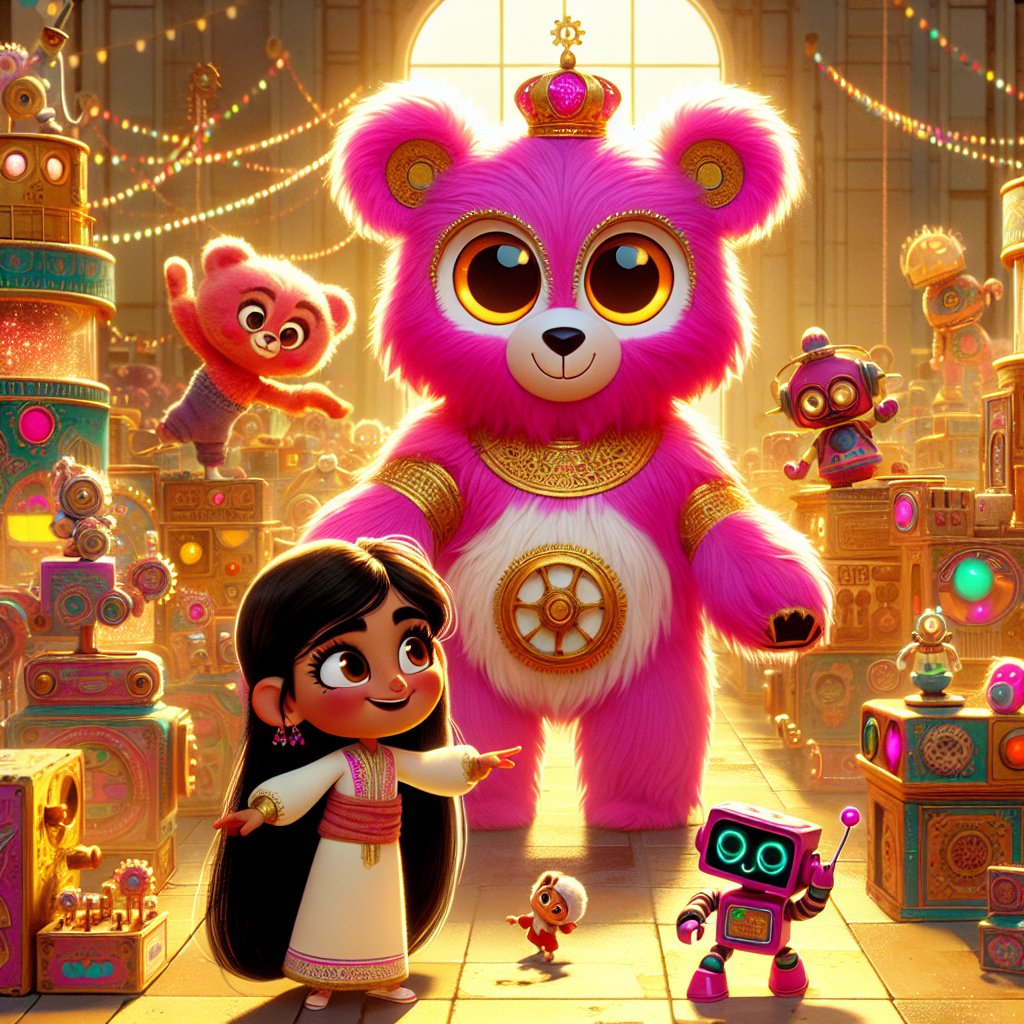 Далеко-далеко, у великій Робото-Фабриці, жив Принц Пірат Ведмідь. У нього була корона з чистого золота та піратська пов'язка на оці, але його хутро було яскраво-рожевим, як улюблений колір Сітари! Він був дуже чемним і любив обійми. Одного разу, граючись з королівськими машинами, йому повідомили, що вкрали Сяючу Шестерню, і всі потяги на фабриці зупинилися. «О ні!» - вигукнув Принц Пірат Ведмідь. «Якщо потяги не ходитимуть, як машини, що робитиме Джаан?»
