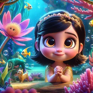 آسمان کے نیچے، گہرے نیلے سمندر میں، ایک شاندار زیرِ آب شہر تھا جہاں مچھلیاں رنگین محلوں میں رہتی تھیں۔ شہر میں ہر طرف بلبلے تیرتے تھے اور کورل اور پودے روشنی سے چمکتے تھے۔ اس شہر میں، ایک خاص جگہ پر، کلور رہتا تھا، ایک چھوٹا سا، گہرا گلابی پودا جو ہمیشہ خوش رہتا تھا۔ جب سورج ان کے پتوں کو گدگدی کرتا، تو وہ مزے سے قہقہے لگاتا تھا۔ کلور نہ صرف ایک عام پودا تھا، بلکہ وہ جادوئی بھی تھا۔ ان کے پتے رات میں چمکتے تھے، اور ہر دن ان کے سر پر ایک نیا پھول کھلتا تھا۔