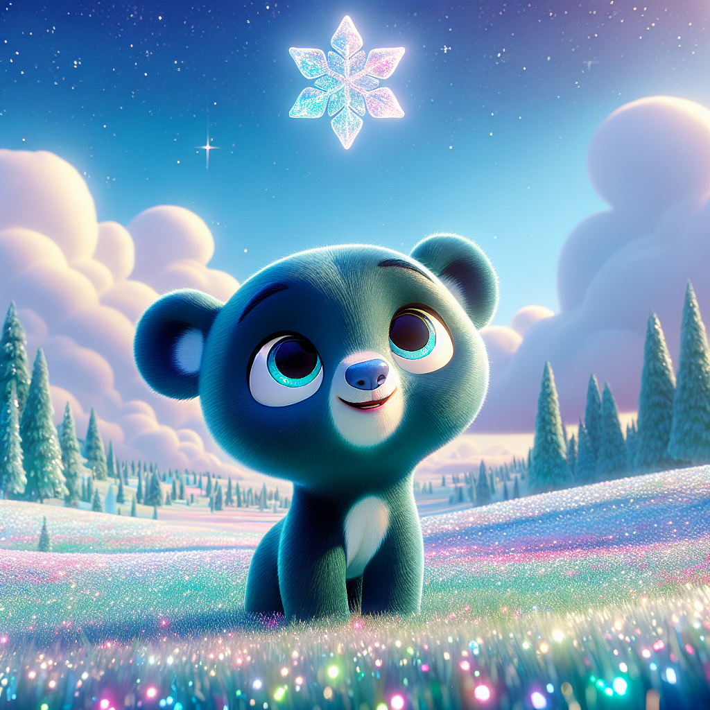 ایک خوبصورت اور پُرسکون چراگاہ میں، جہاں برف کے ذرات چمکتے تھے اور بادل نرم اورふわふわ تھے۔ وہاں پولا نام کا ایک پیارا برفانی ریچھ رہتا تھا، جس کے کان نیلے تھے اور رنگ گہرا فیروزی تھا۔ پولا برف سے کھیلنا بہت پسند کرتا تھا۔ وہ برف کے خاص ٹکڑے بناتا تھا، جن کی شکلیں ستاروں اور شہزادیوں کے تاج جیسی ہوتی تھیں! پولا برف کے ان ٹکڑوں کو اڑتے ہوئے دیکھ کر بہت خوش ہوتا تھا۔