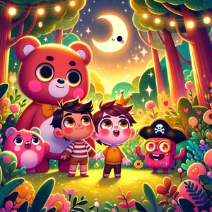 انہوں نے جنگل میں ایک پریڈ کا انعقاد کرنے کا فیصلہ کیا۔ انہوں نے تمام جانوروں کو دعوت دی! انہوں نے رنگین پتیاں، چمکدار کنکر، اور بوپ کی آنکھوں سے نکلنے والے ستاروں سے سجے ہوئے مناظر جمع کیے، جو بچوں کی خلا میں دلچسپی کو ظاہر کرتے ہیں۔ شہزادہ قزاق ریچھ نے شہد کی چائے (اس کی پسندیدہ!) تیار کی، اور بوپ نے ایک ننھی ٹرین بنائی۔ ٹرین شہد کی چائے اور مزے کی چیزیں لے جانے والی تھی۔