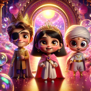 ایک بار کی بات ہے، ستاروں کی کہکشاں میں ایک خوبصورت خلائی سٹیشن تھا، جو سب سے زیادہ گلابی رنگ کا تھا۔ وہاں ایک شہزادہ رہتا تھا، شہزادہ قزاق بیئر۔ وہ ایک بہادر ریچھ تھا جس کے سر پر سنہری تاج اور ایک آنکھ پر قزاقوں کا پٹی بندھا ہوا تھا۔ شہزادہ قزاق بیئر کو گلابی ہر چیز بہت پسند تھی: اس کا تاج، اس کا کوٹ، اس کے جوتے اور اس کی میز بھی! وہ اپنی سلطنت کی حفاظت مہربانی اور پیار سے کرتا تھا۔ شہزادہ قزاق بیئر کے پاس 37 مختلف تاجوں کا مجموعہ تھا اور اسے شہد کی چائے پینا بہت پسند تھا۔