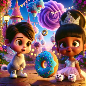 Chào mừng đến Làng Tiên, một nơi diệu kỳ nơi những bông hoa lấp lánh và ngát hương. Những ngôi nhà nhỏ xíu được làm từ kẹo bông và những con đường trải đầy kẹo dẻo. Ở trung tâm ngôi làng là một chiếc bánh rán biết bay tên là Dizzy, màu xanh da trời nhạt. Dizzy thích quay tít vòng quanh, bay lượn và kể những câu chuyện cười ngớ ngẩn nhất trong khi rắc những hạt kim tuyến đủ màu. Dizzy có thể bay qua những không gian nhỏ nhất bằng cách quay tròn, tạo ra âm thanh “whoop” mỗi khi thích thú, và những hạt kim tuyến trên mình sẽ thay đổi màu sắc tùy thuộc vào câu chuyện cười. Nhưng hôm nay, Làng Tiên buồn bã hơn mọi ngày. “Chiếc Túi Lấp Lánh” đã biến mất! Chiếc túi này chứa đầy bụi tiên, thứ làm cho ngôi làng thêm phần kỳ diệu.