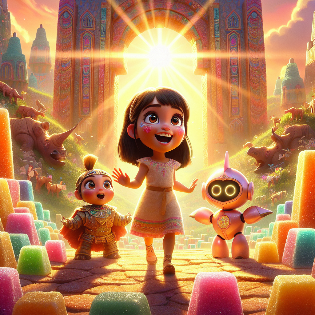 Họ bắt đầu cuộc tìm kiếm, lần theo những lối đi bí mật trong tàn tích cổ xưa. “Nhìn kìa!” Azal reo lên, "Một căn phòng đầy những đôi giày!” Căn phòng lấp lánh ánh sáng, với những đôi giày đủ hình dạng và kích cỡ. “Mình cảm giác như đang đội vương miện!” Azal cười, tay chạm lên đầu. Zoggy bật chiếc máy tạo bong bóng, chiếu sáng con đường tối tăm. Họ nghe thấy tiếng hát du dương vọng ra từ trên đỉnh một tòa tháp. “Chắc chắn vương miện ở trên đó!” Azal nói. Nhưng... không! Tòa tháp bị chặn bởi một tảng đá lớn. Zoggy cố gắng biến hình để di chuyển tảng đá, nhưng tảng đá quá to. Zoggy thử biến hình thành một chiếc búa, nhưng không được! Azal và Zoggy nhìn nhau, bối rối. Họ cần giúp đỡ.