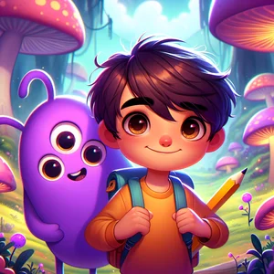 他们走着走着,来到了一片迷宫般的巨型蘑菇丛。这些蘑菇看起来一模一样,很难分辨方向。亚历克斯有点害怕,但是班奇立刻安慰他说:“别担心,亚历克斯!我来帮你们!”