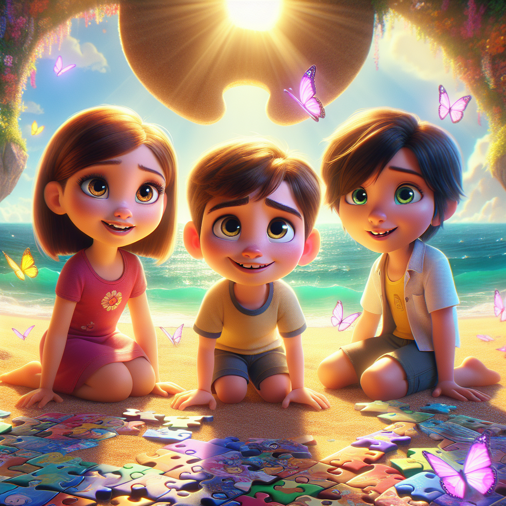 露玛公主决定找出原因。 她开始召唤她的蝴蝶朋友们。 "亲爱的蝴蝶们,你们看到祖祖和佩奇了吗?" 露玛公主轻声问道,她的声音像微风一样温柔。 蝴蝶们开始嗡嗡作响,用它们的翅膀指着远方。 它们带露玛公主来到了一片巨大的阴影之下。 这片阴影像一片巨大的拼图,笼罩着整个海滩。 在阴影的中央,露玛公主看到了一些熟悉的身影。 "祖祖! 佩奇!" 露玛公主喊道,她的声音充满了关切。 但是,她的朋友们似乎被困在了阴影里,无法回应。 露玛公主知道,要帮助她的朋友们,就必须解开这片巨大的拼图。 她环顾四周,思考着该怎么做。 突然,她想到了一个主意。 她想起了利喜欢的拼图游戏。 露玛公主知道,只有解决拼图,才能让她的朋友们回来。 露玛公主开始呼唤她的蝴蝶朋友们。 露玛公主利用她能与蝴蝶说话的能力,请它们帮助她。 "蝴蝶们,请你们找到拼图的图案。" 露玛公主说道。 蝴蝶们飞舞着,开始在海滩上寻找线索。 很快,它们就找到了一幅不完整的图案,图案正是巨大的拼图的形状。 露玛公主灵机一动。 露玛公主的头发变成了金黄色。 她的花园里,生长着许多神奇的花朵,这些花朵可以用愿望来培育。 露玛公主知道她需要用花朵来完成拼图。 她开始在花园里播下种子,每一颗种子都代表着一个美好的愿望。 露玛公主开始仔细地挑选,挑选着花朵的颜色和形状。 在她的帮助下,蝴蝶们开始行动起来,帮助露玛公主完成拼图。 它们用它们的智慧,将不同颜色的花朵,按照拼图的图案,一一摆放在地上。 露玛公主仔细地观察着,确保每一朵花都摆放在正确的位置上。 在大家共同的努力下,拼图的图案逐渐显现出来。 露玛公主开始用她充满爱意的心,用温柔的目光注视着每一朵花。 她知道,只有她的爱,才能让拼图复原。 露玛公主的眼睛里闪烁着光芒。 阳光照射在海滩上,洒满了金色的光辉。 露玛公主的头发开始慢慢地变回粉色,她的情绪变得越来越好,她知道她离成功越来越近了。 随着拼图的完成,笼罩在海滩上的阴影开始消散。 阴影像被阳光融化的冰块一样,慢慢地消失了。 突然,天空响起了音乐。 露玛公主抬头望去,看到了祖祖和佩奇。 祖祖在空中飘浮着,它开始发出悠扬的咕噜声,吹出充满音乐的泡泡。 佩奇则挥舞着她的扫帚,让泡泡变得五彩缤纷。 彩虹色的泡泡在空中飞舞,充满了欢声笑语。 露玛公主的王冠闪耀着更加耀眼的光芒。 海滩上恢复了往日的快乐,阳光、音乐和友谊又回来了。 露玛公主开心地笑了,她知道,只要大家团结在一起,就可以克服任何困难。