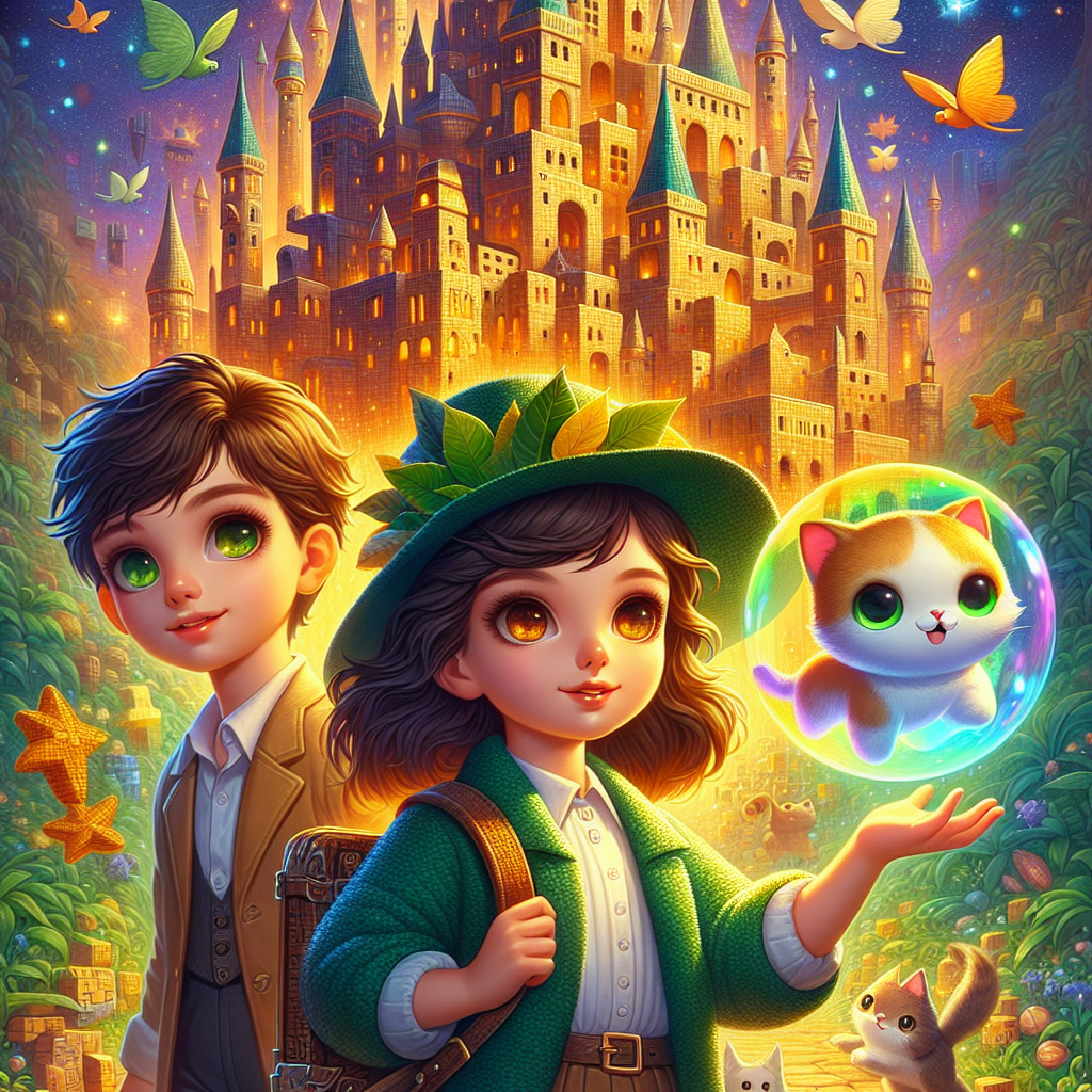 他们沿着藏宝图,穿过闪耀着光芒的小溪,走过会唱歌的蘑菇,来到了用积木搭成的城堡。城堡里,有一个友好的声音在呼唤他们:“快进来吧,欢迎来到我的城堡!”