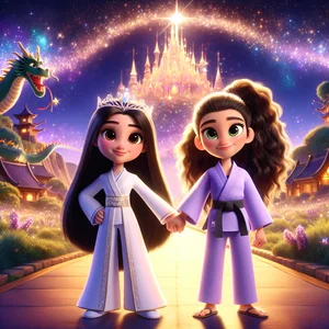 火箭泡泡和卡雅成为了英雄,大家都一起在闪烁的星星下跳舞。他们明白了友谊和善良的力量。所有的孩子都笑了,龙也笑了,世界变得更美丽了。