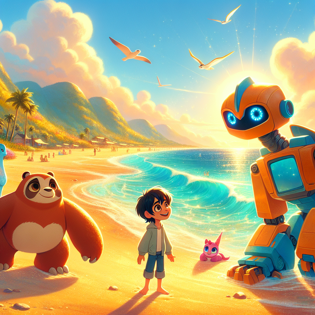 与此同时,穿着深蓝色皇室长袍的熊伯伦,正坐在沙滩上,享受着他的茶会。伯伦是一只毛茸茸的熊,以公平和智慧而闻名。“嗯,”伯伦说道,他毛茸茸的耳朵竖了起来。“我觉得有些不对劲……好像有什么东西要来了。” 伯伦可以根据毛发的蓬松程度预测天气,他总是带着他的皇家权杖,那权杖也是一个蜂蜜勺。